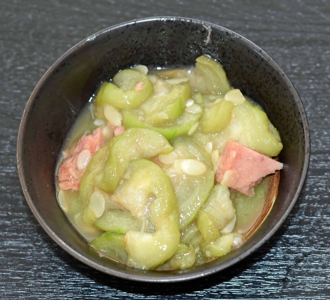 ヘチマの実が柔らかく、そしてほのかな甘みがあり、それがスパムの塩味とよくマッチしていました。
