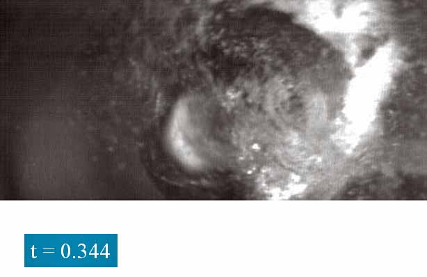 高速度カメラの画像(がぞう、白いのがマイクロバブル)