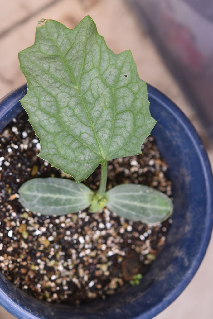 ようやく4つ葉目が出始めました(土耕、2017年5月28日、筆者撮影)
