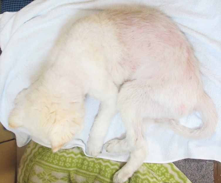 写真は、入浴剤が合わなかったようで、脱毛してしまったときのペロの様子です。