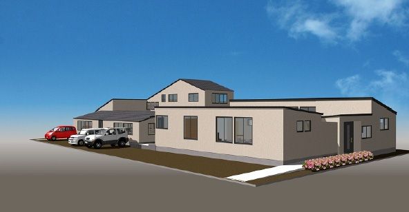 最初のプランのころの研究所棟(緑砦館)の外観イメージ(左は現在の大成邸、右側が新築部分)