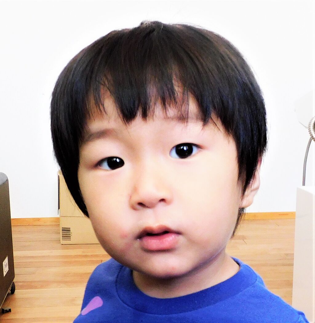 写真は、今日のユッツです。良く動くことから、顔が引き締まり、より細面の幼児の顔になっています。