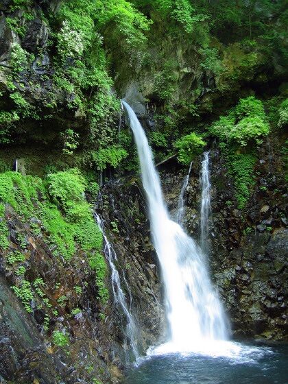 そういえば、名画『隠し砦の三悪人』のなかにも、裏見ができる滝が出てきていましたが(私の記憶では、そうなのですが、確かめてはいないので、間違っているかもしれません)、これは長野県の「唐沢の滝」だったようで、この滝の傍から枝の中に隠された「金の延べ棒」が出現していました。