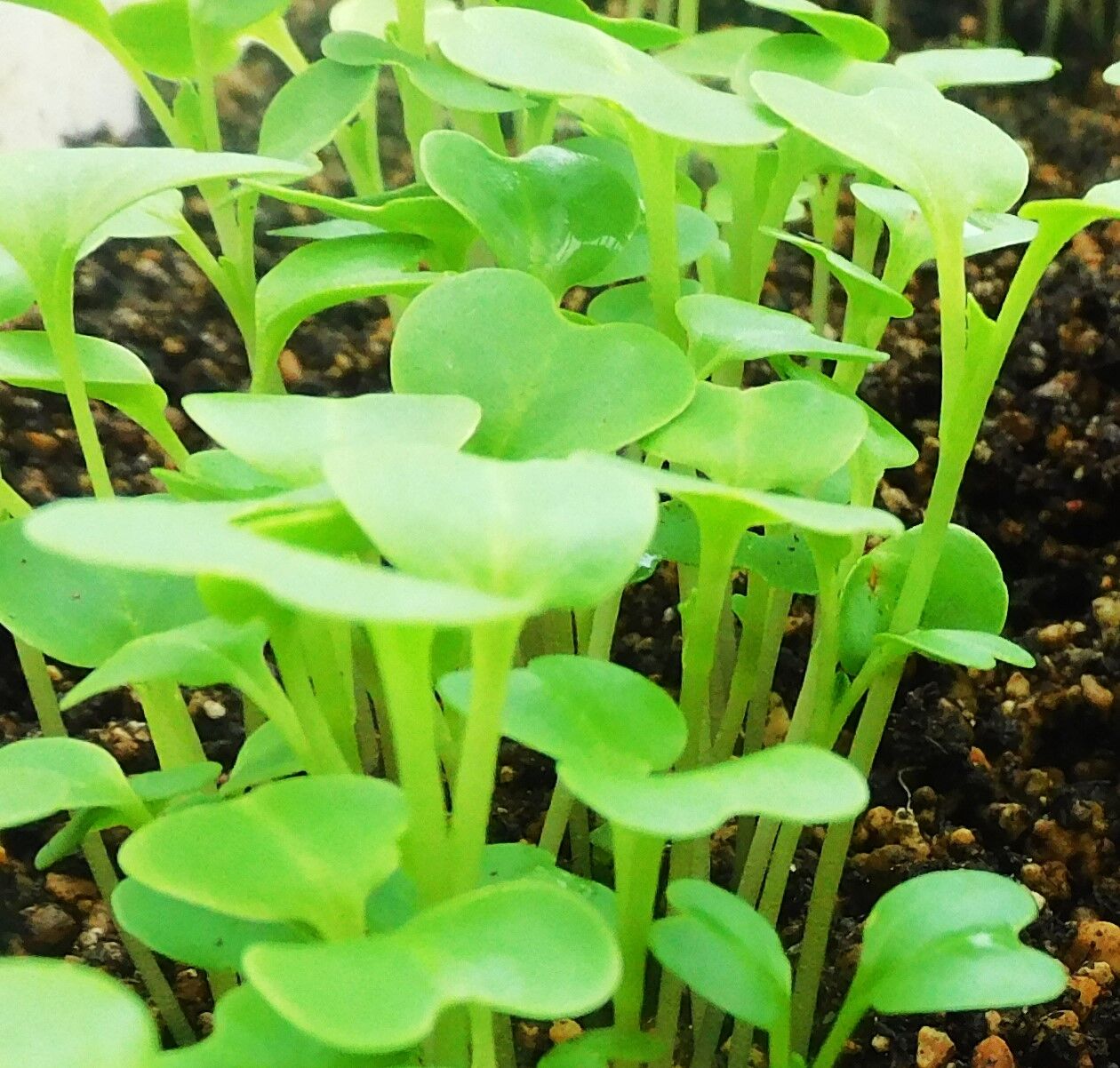 第一次播種分のコマツナが発芽し、すくすくと成長しています。