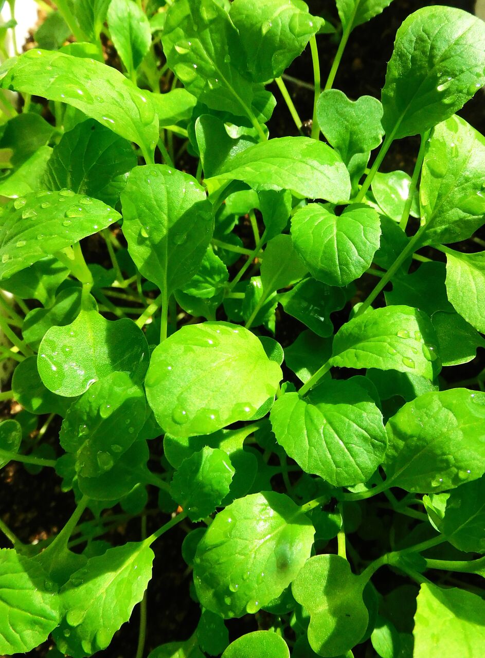 4)サラダ菜、ブロッコリー(スプラウト)の種子を光マイクロバブル水に浸潤させました。