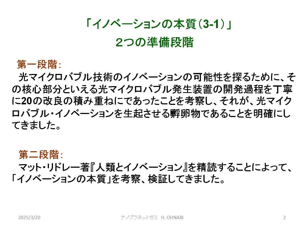 ②:マット・リドレー著『人類とイノベーション』に示された「イノベーションの本質」に沿って、いよいよ具体的な事例の検討を開始したことが報告されました。