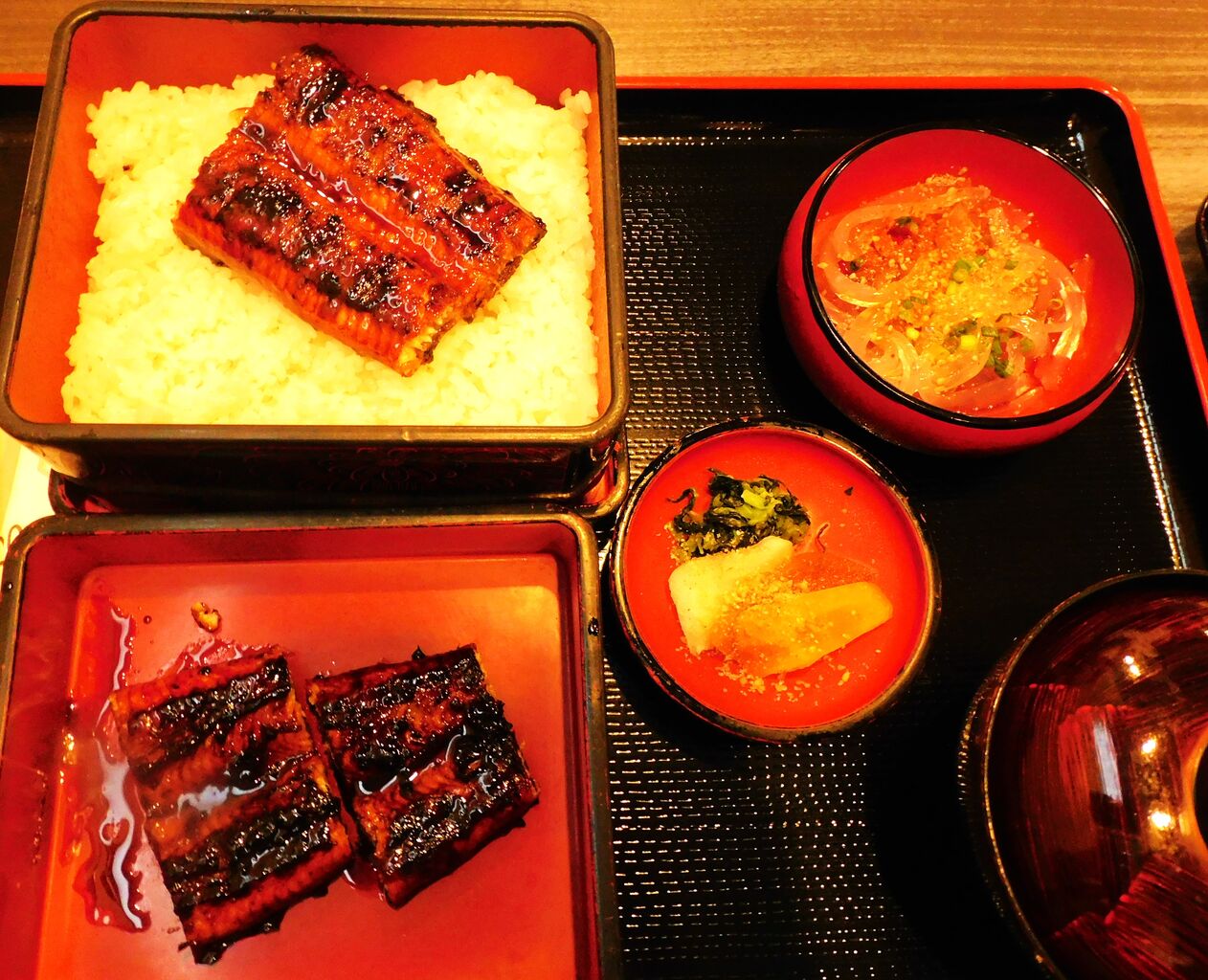 志おやの「うな重」(ご飯の上が「特」の鰻、下が「竹」の鰻)